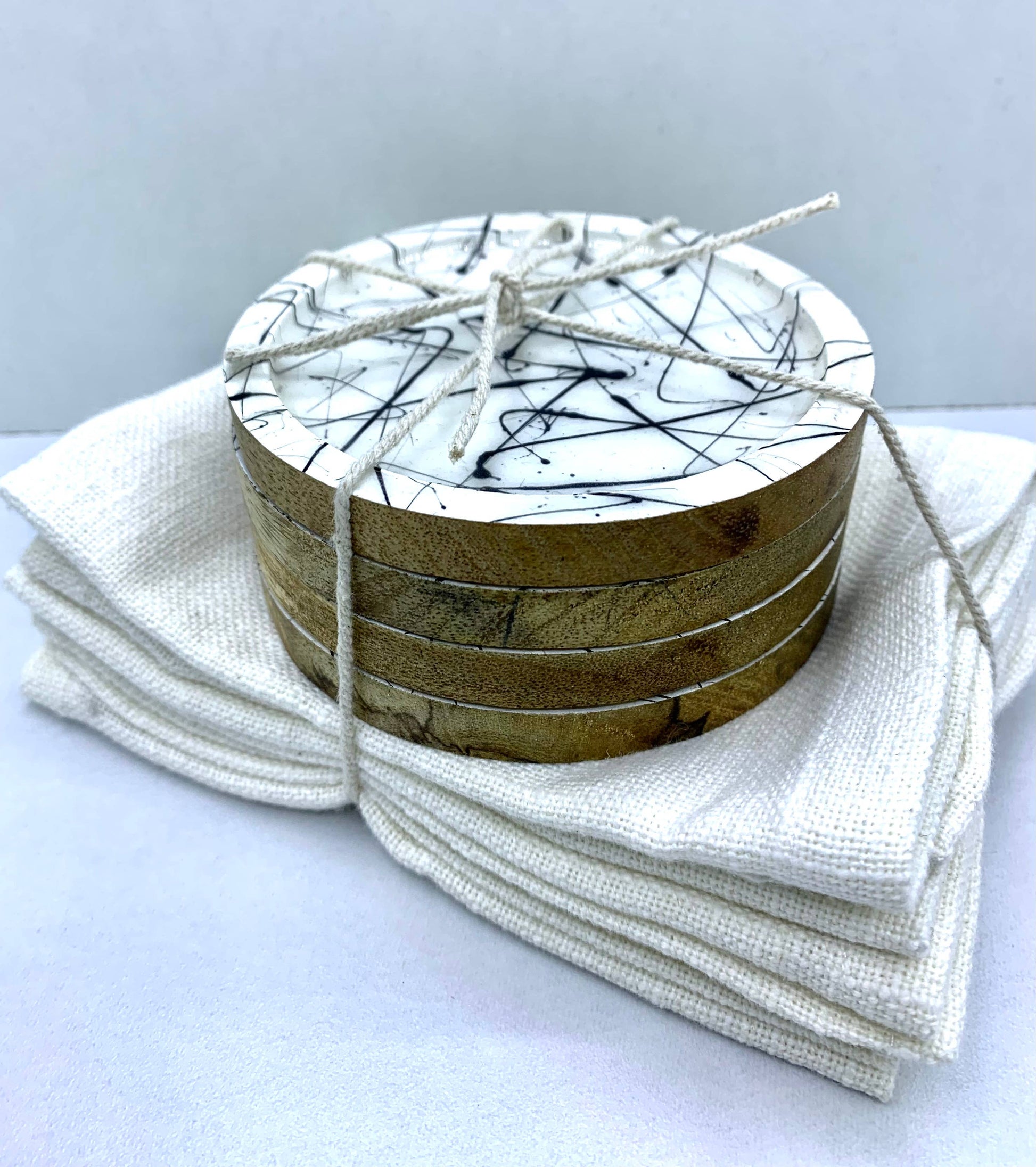 Gift Pack -Set Of 4 wood Coasters & Cocktail napkins