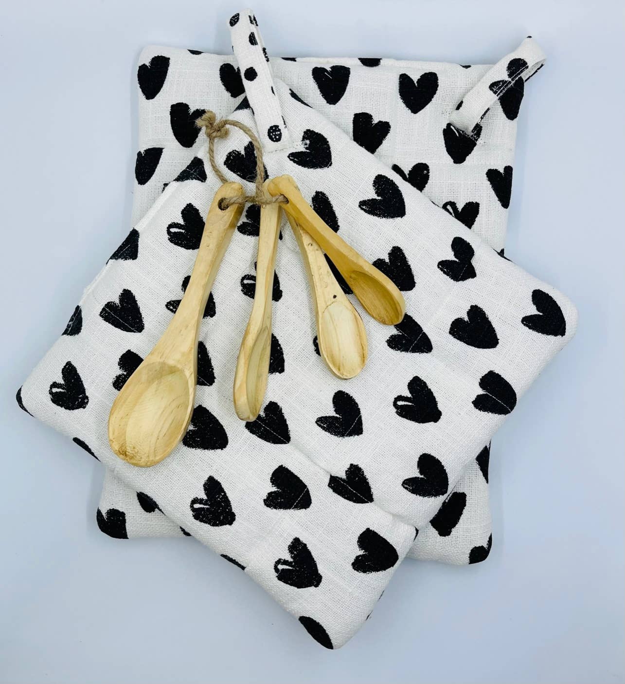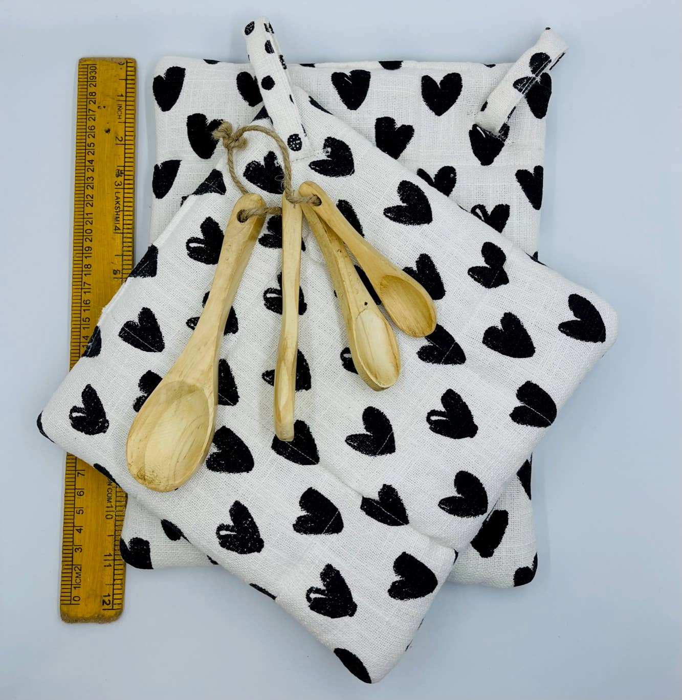Set Of 2 Pot holders & Acacia wooden measuring spoon set